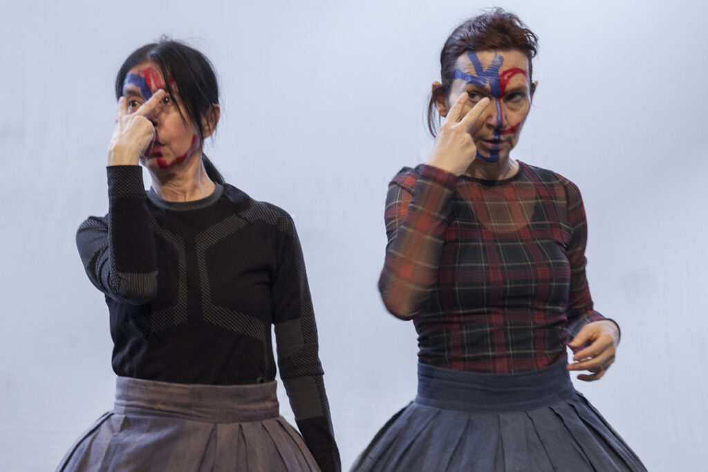 Investissant le corps comme épaisseur du temps, de motifs, de forces et de souvenirs, elles confrontent ainsi leurs parcours respectifs dans un jeu d’aller-retour frondeur de compositions et de décompositions. D’une ironie assumée, le spectacle célèbre l’énergie de la danse comme pratique créatrice d’espaces et d’utopies.